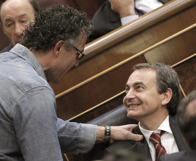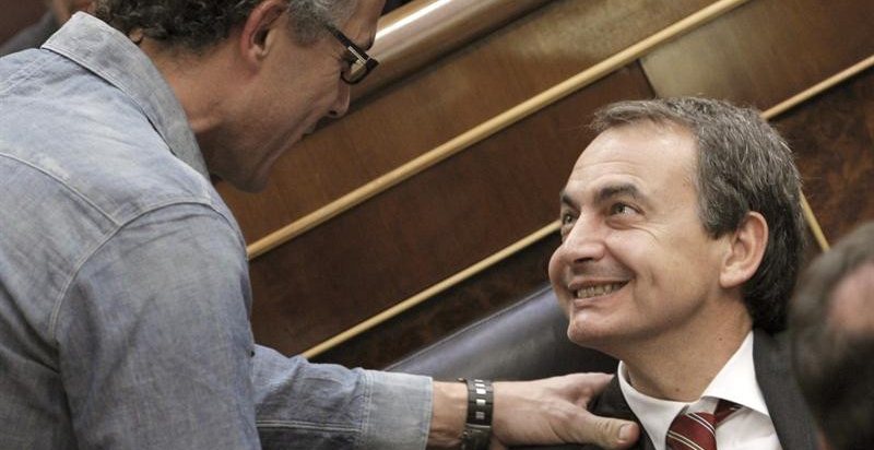 El presidente del gobierno en funciones, José Luís Rodríguez Zapatero (d), conversa muy sonriente con Xabier Mikel Errekondo, diputado de Amaiur.