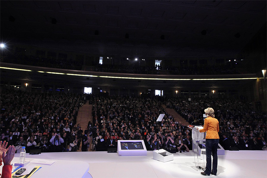 La primera fila del patio de butacas, con los líderes del partido