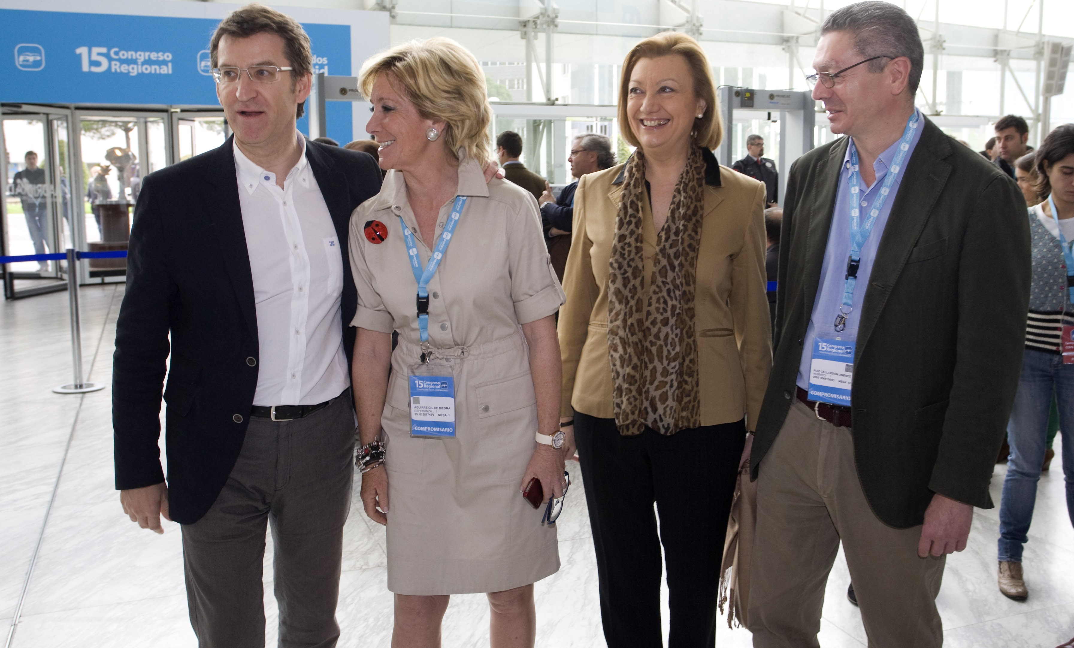 Esperanza Aguirre acompañada de Luisa Fernanda Rudí, Aberto Núñez Feijóo y Alberto Ruiz Gallardón