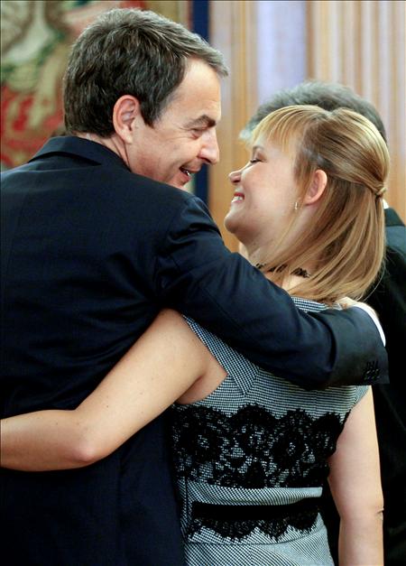 Una imagen vale más que mil palabras, dicho que se ajusta perfectamente a esta instantanea del presidente y Leire Pajín, su protegida, nombrada ahora por él ministra de Sanidad. EFE