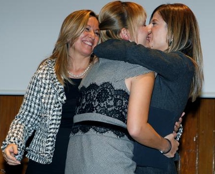 Tras el beso, las dos protagonistas proceden al traspaso de carteras. EFE
