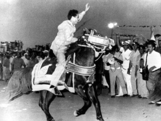 Gadafi accedió al poder el 1 de septiembre de 1969. Por la edad con la que lo tomó, su imagen de militar rebelde y sus políticas izquierdistas anticolonialistas y antioccidentales, fue conocido como el "Ché Guevara árabe"