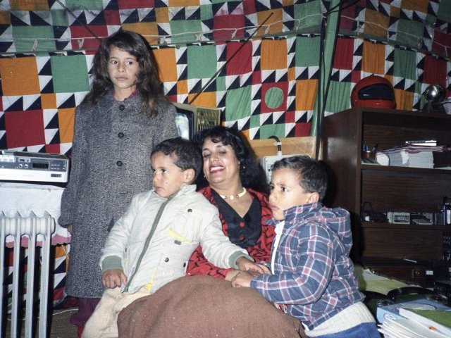 Sofiya Gaddafi, esposa del líder libio Muammar Gaddafi posa con sus hijos en una tienda beduina en Trípoli, el 12 de enero de 1986