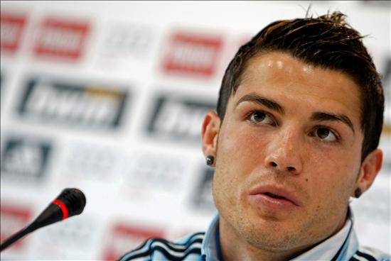 El jugador del Real Madrid Cristiano Ronaldo durante la rueda de prensa tras el entrenamiento que realizó hoy la plantilla en la ciudad deportiva de Valdebebas, de cara al partido que disputará el próximo domingo contra el FC Barcelona en el Camp Nou. EFE/Ballesteros