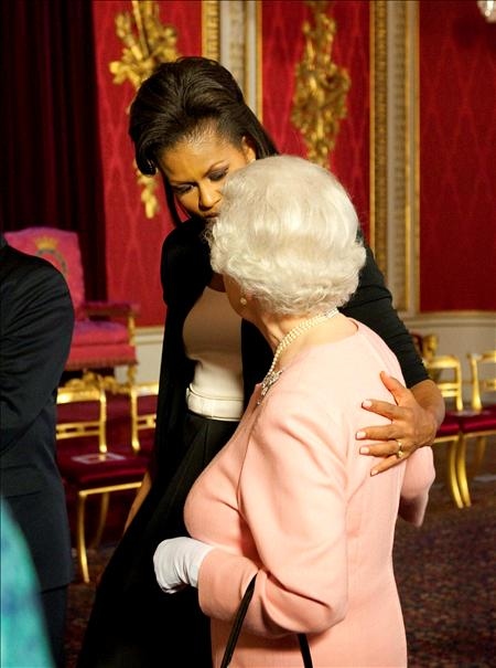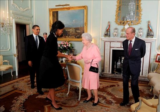 Michelle Obama saluda a la reina de Inglaterra en el Palacio de Buckingham. (EFE)