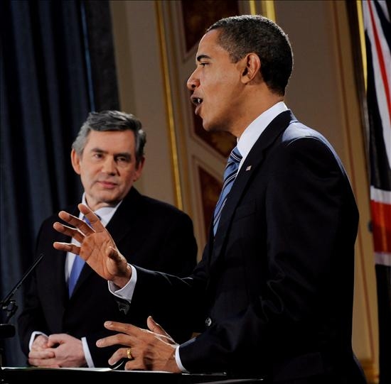 Rueda de prensa conjunta de Brown y Obama en la víspera de la Cumbre del G-20. (EFE)