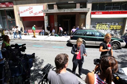 Numerosos medios de comunicación se han concentrado en las inmediaciones de la vivienda que Iñaki de Juana Chaos tiene en San Sebastián, ante la polémica que ha creado su vuelta a la localidad tras su reciente excarcelación.(EFE)