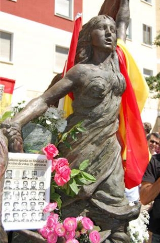 Cientos de asistentes al homenaje a las víctimas de De Juana Chaos en la plaza de la República Dominicana, tras ser éste excarcelado al cumplir su pena de tres años por amenazas. Foto: Sergio Ortega, lector LD.