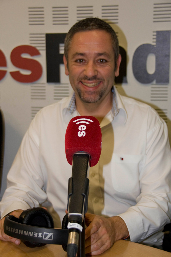 El director de Goles con Parrado durante la retransmisión del derbi Real Madrid - Atlético de Madrid.