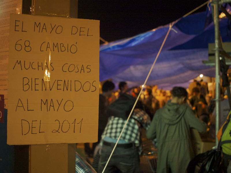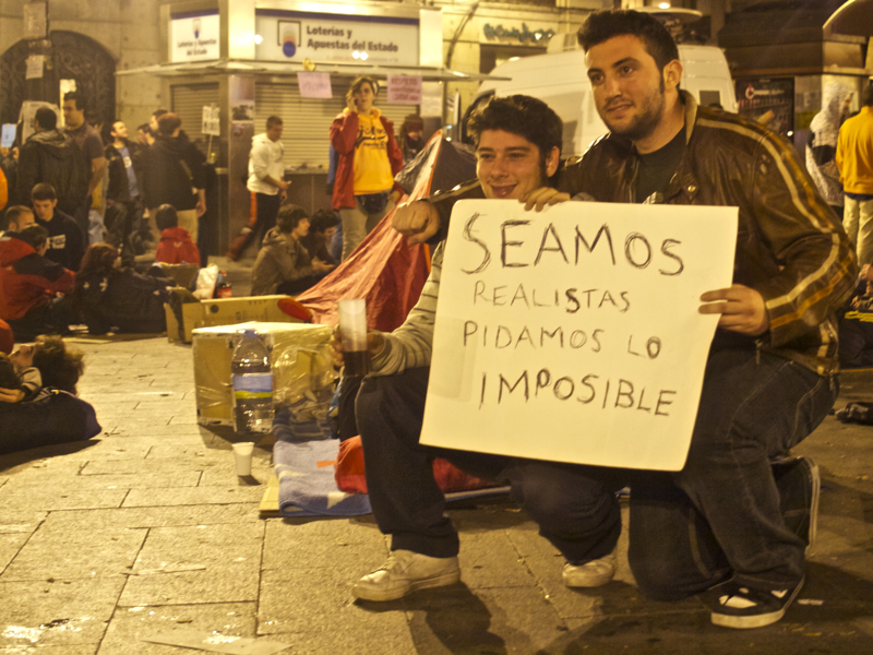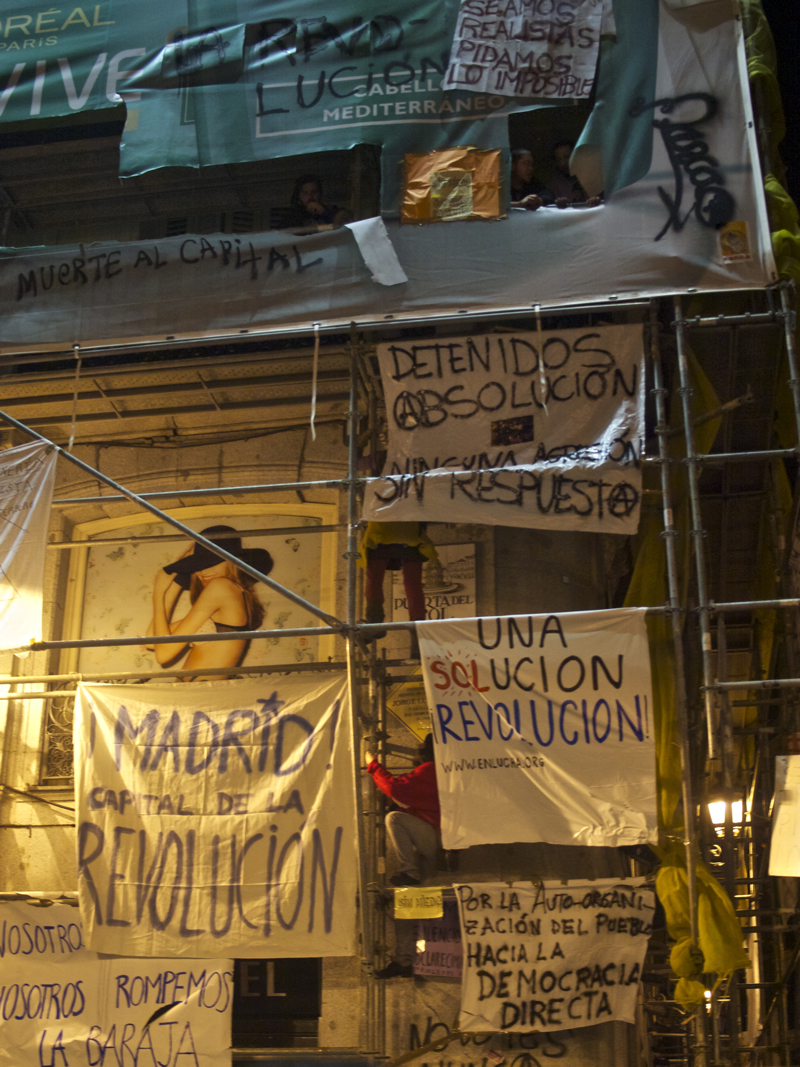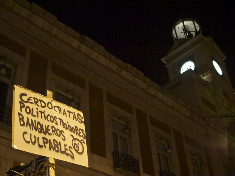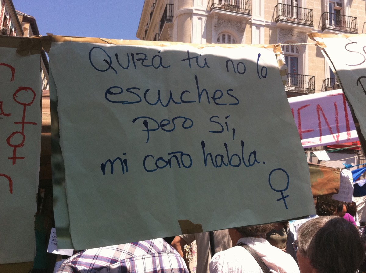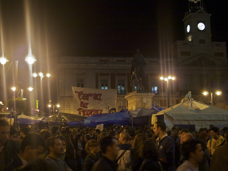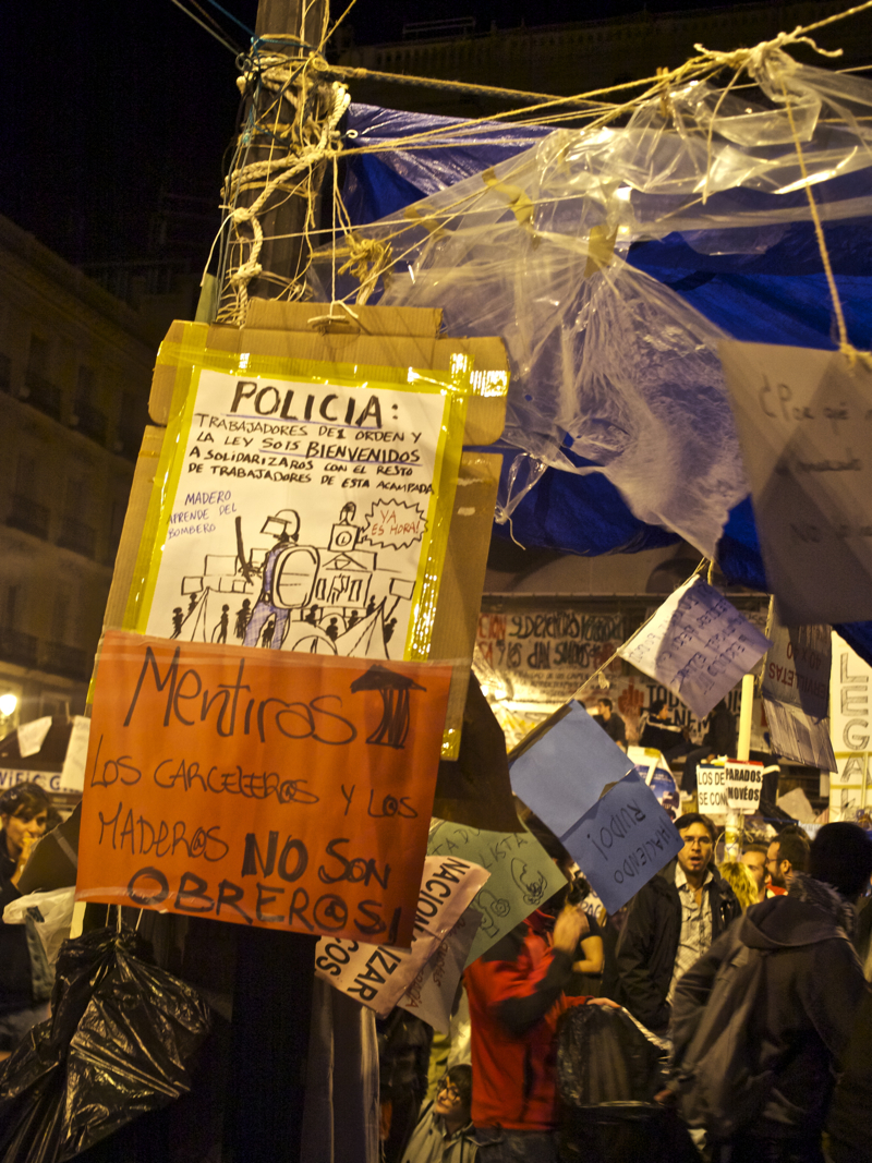 Una consigna muy en la línea del ambiente que se respira en la Puerta del Sol.