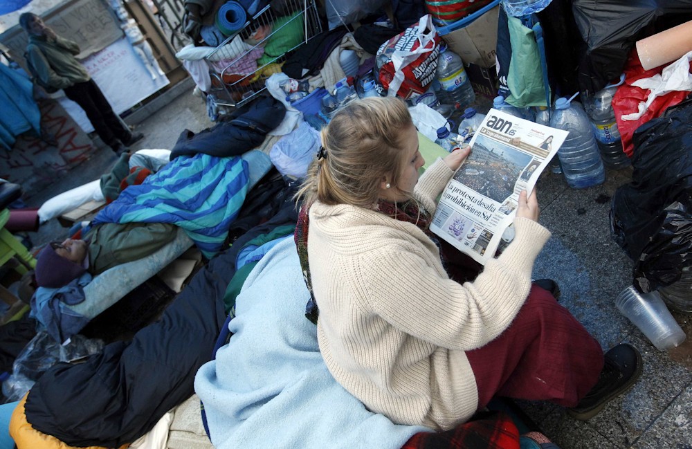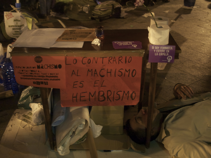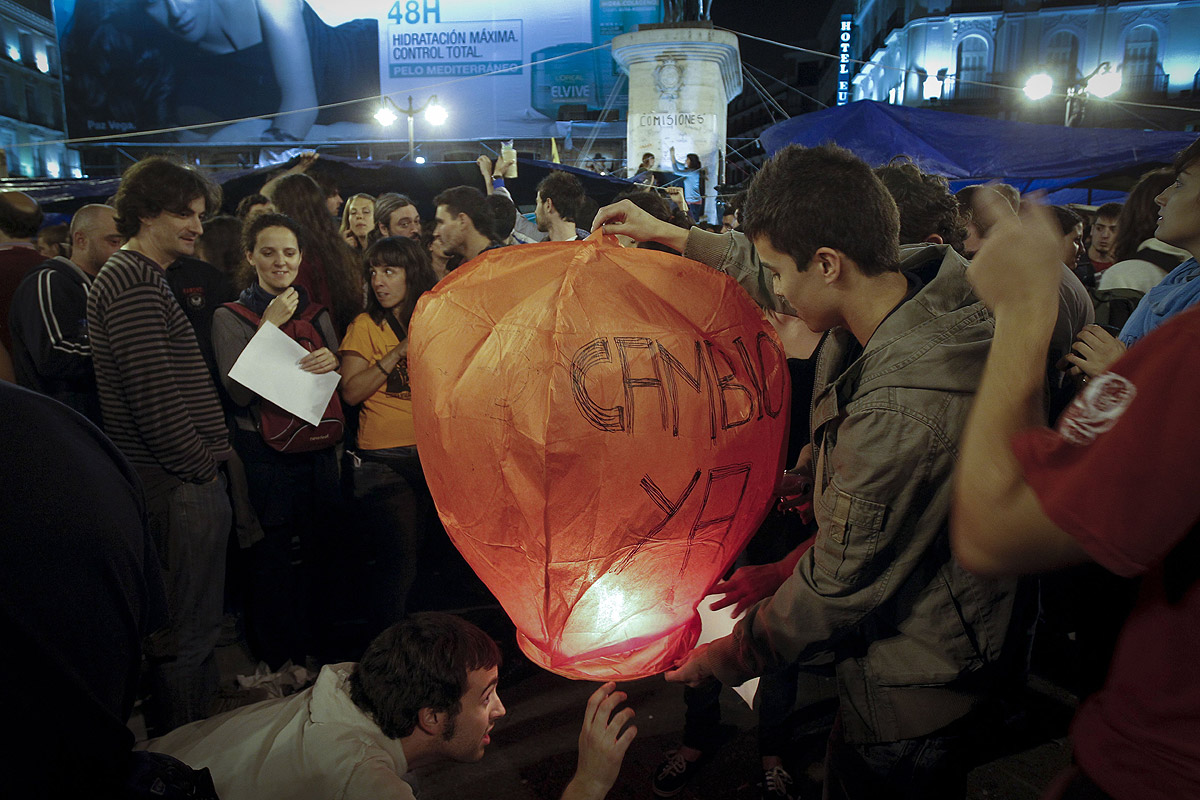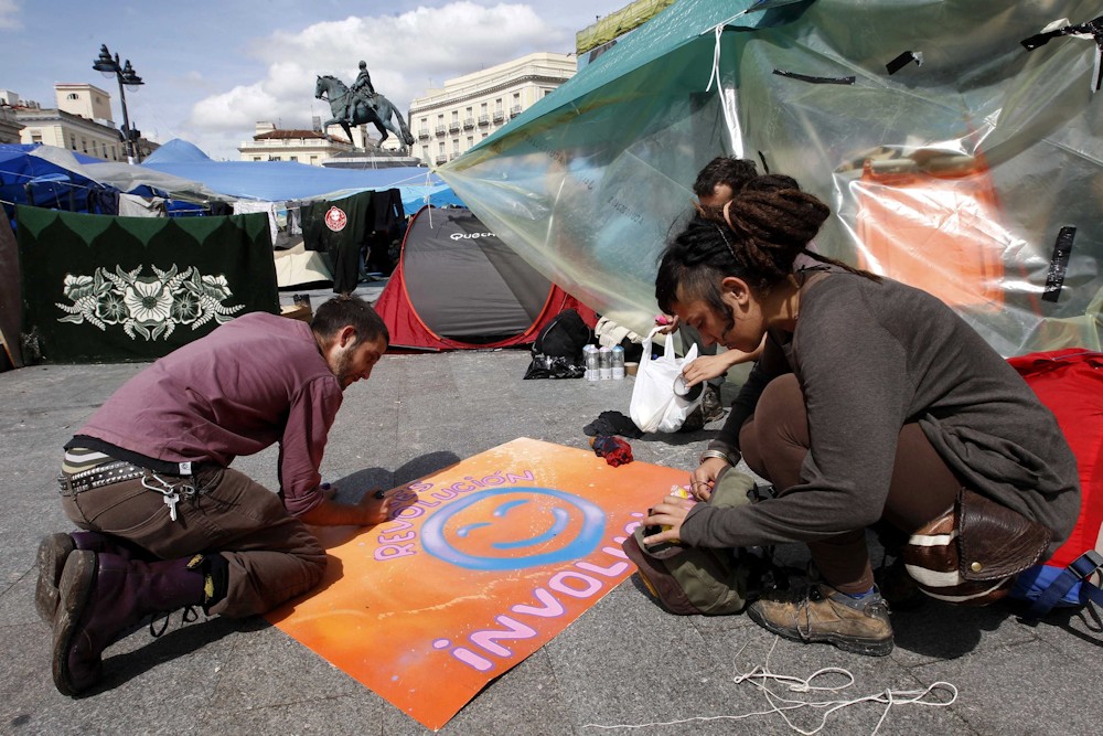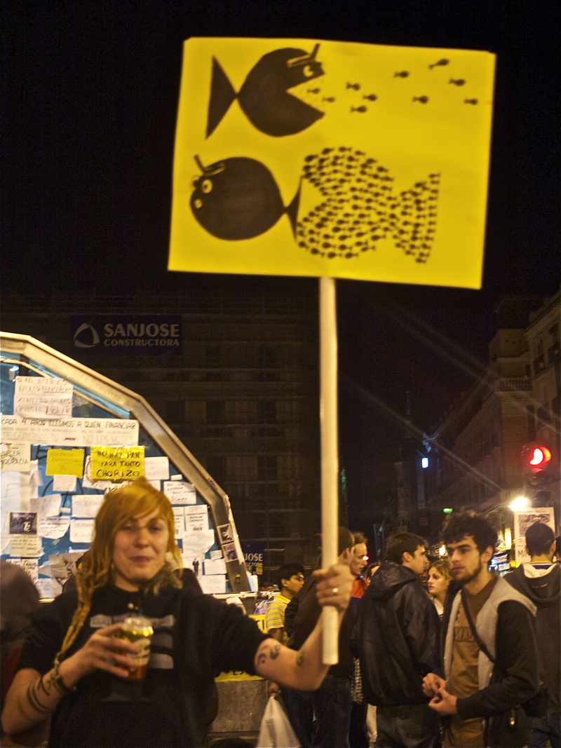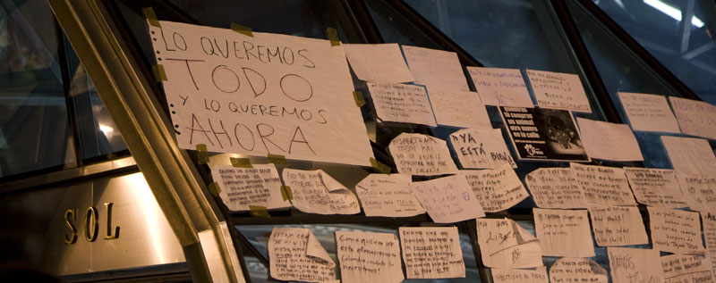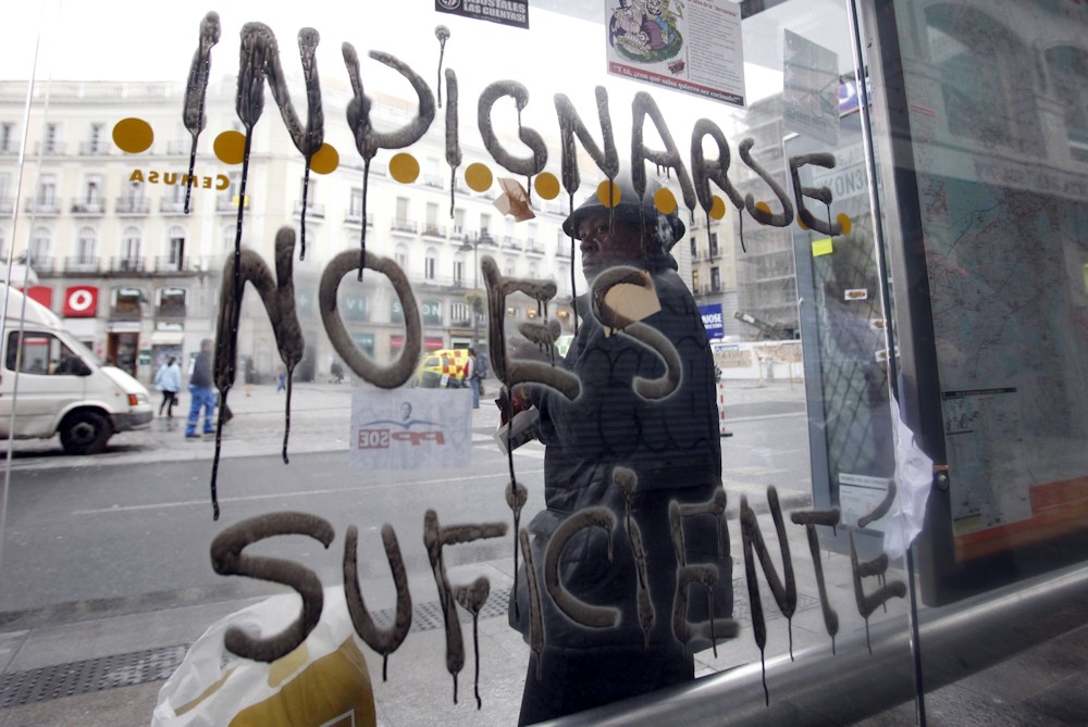 Una consigna muy en la línea del ambiente que se respira en la Puerta del Sol.