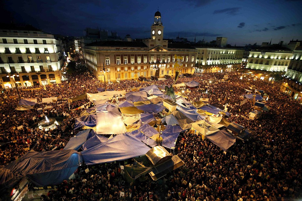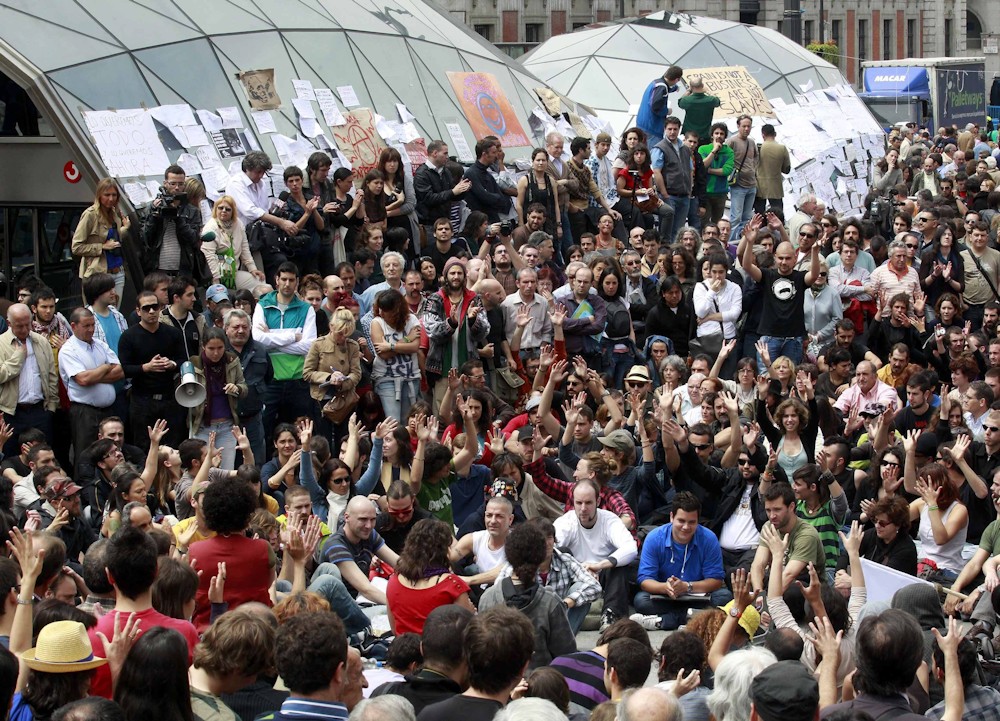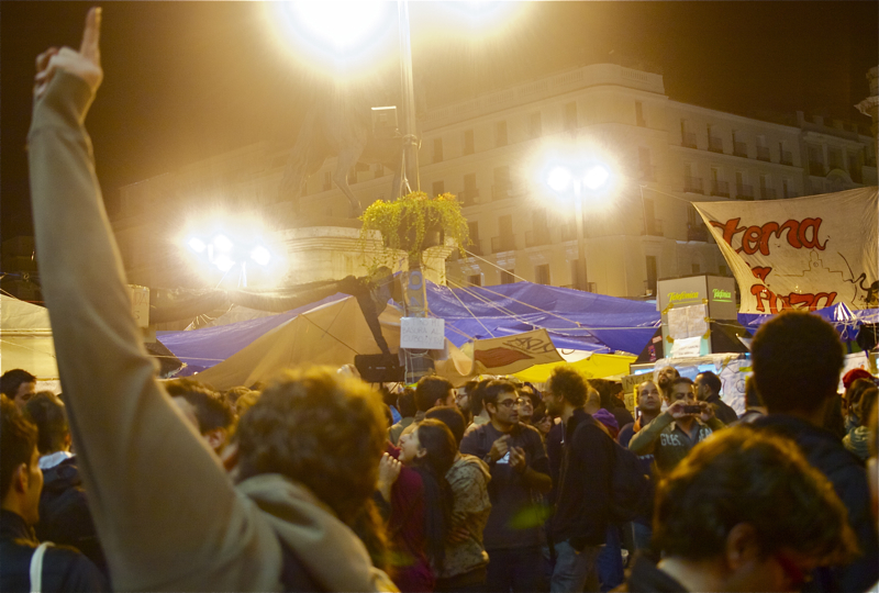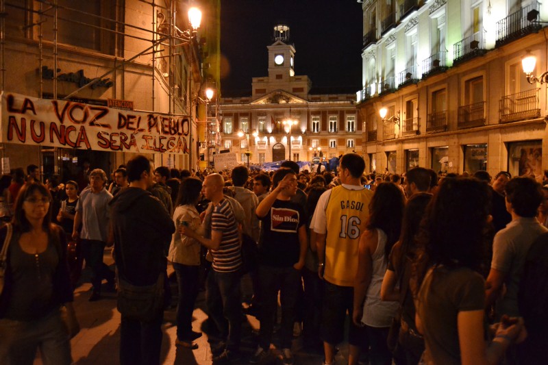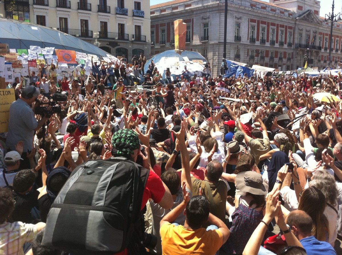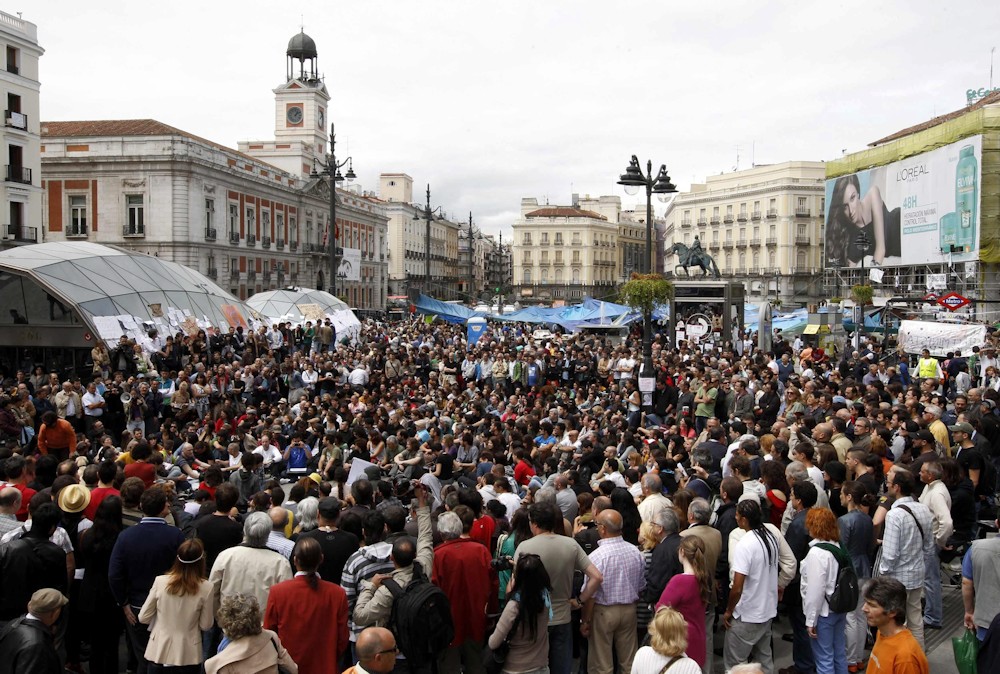 Una de las asambleas que se desarrollan en la Puerta del Sol