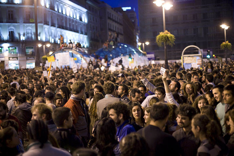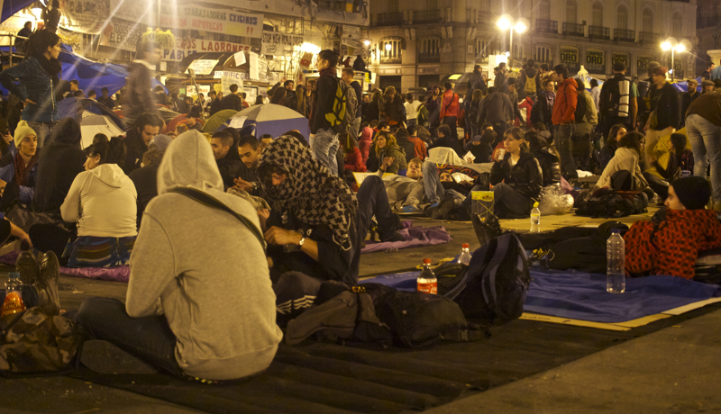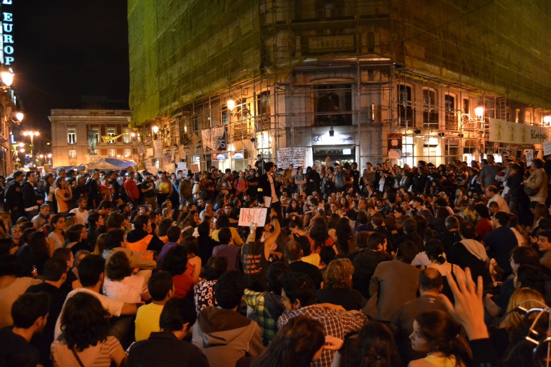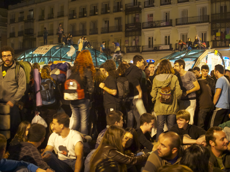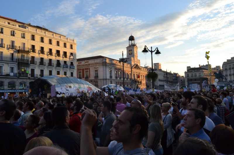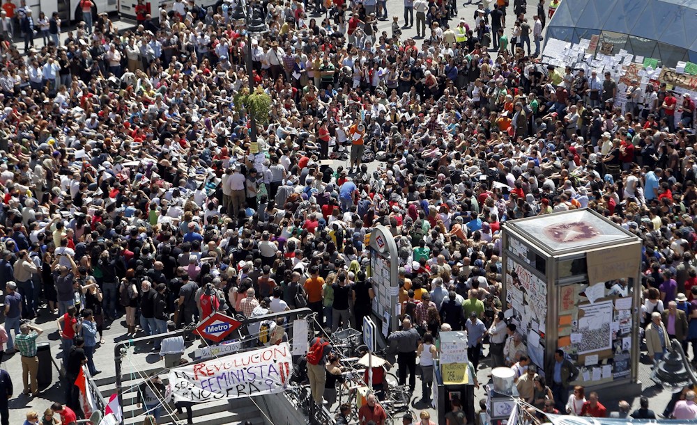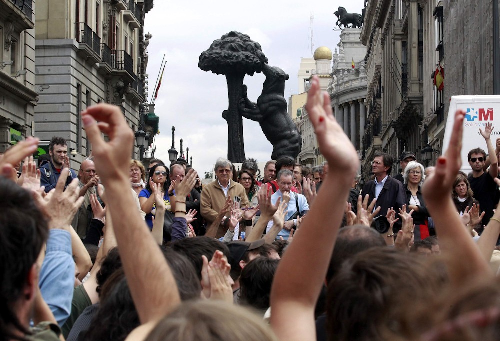 Una de las asambleas que se desarrollan en la Puerta del Sol