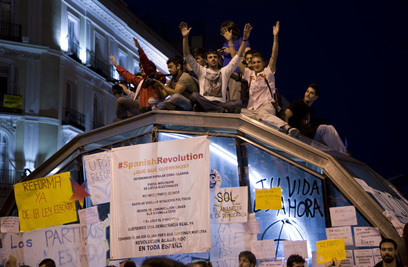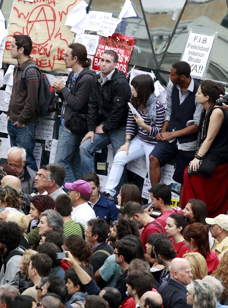 Los "indignados" desafían la prohibición de la Junta Electoral y permanecen en la Puerta del Sol.