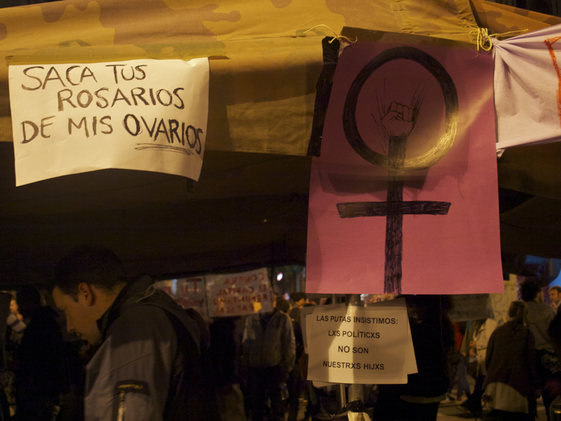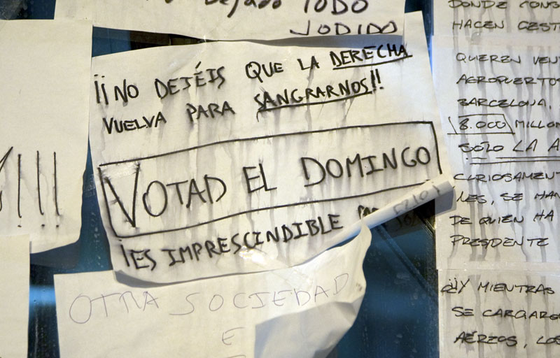 Bajo un cartel publicitario con el rostro de Paz Vega cuelgan los más variopintos mensajes.