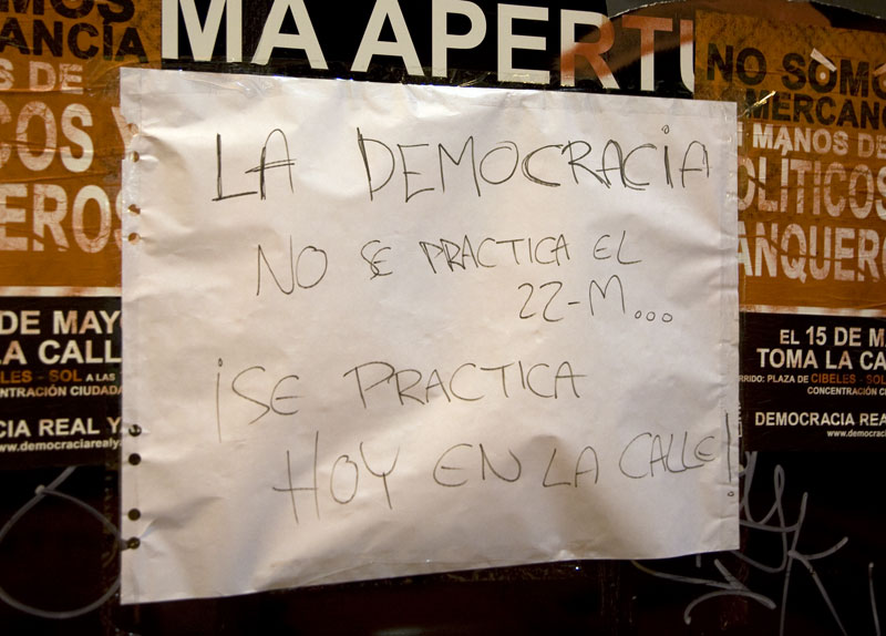 La democracia no es votar, sino estar en la Puerta del Sol coreando consignas prefabricadas. Gran hallazgo.