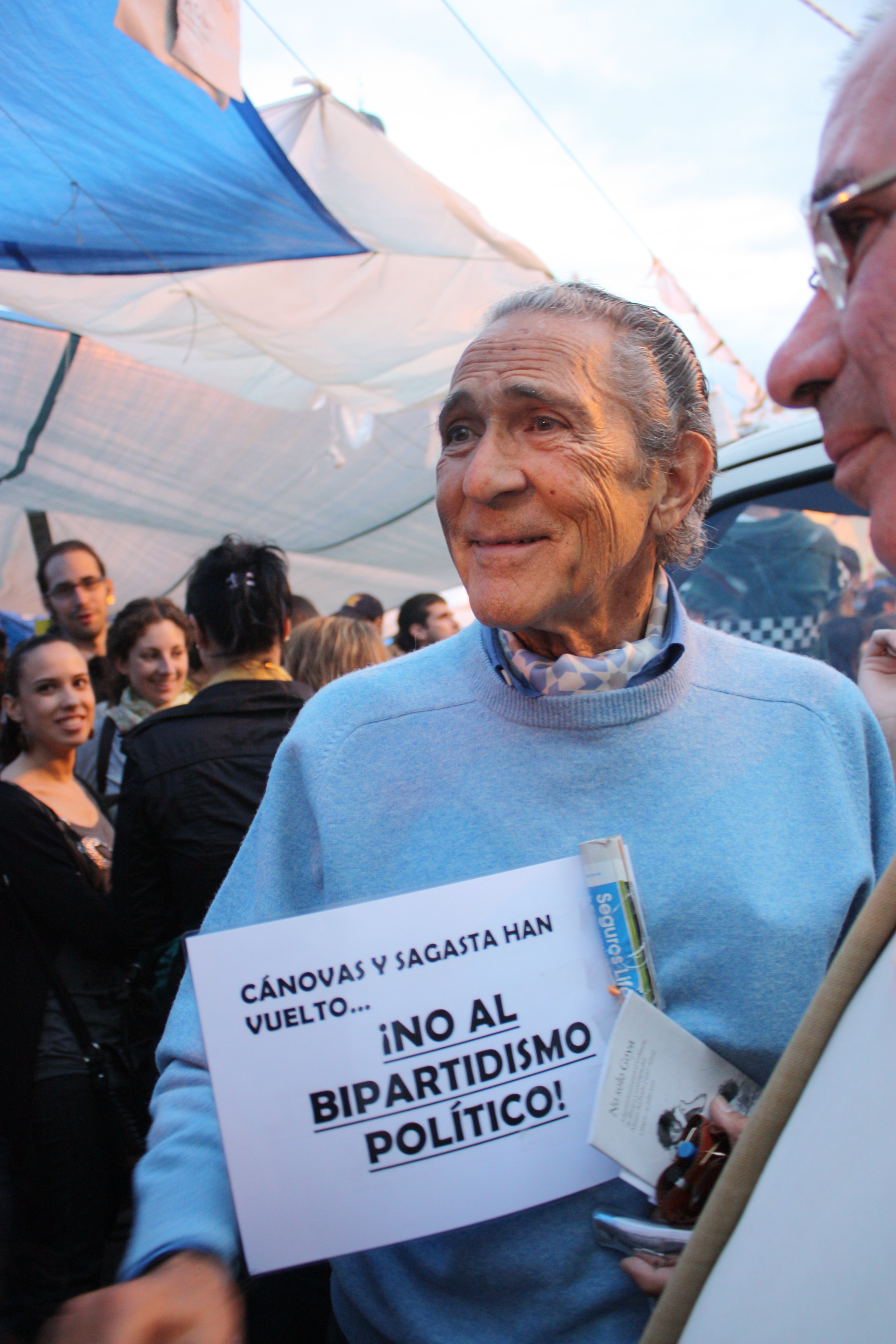 El escritor Antonio Gala también pasó por la acampada de Sol este jueves por la tarde.