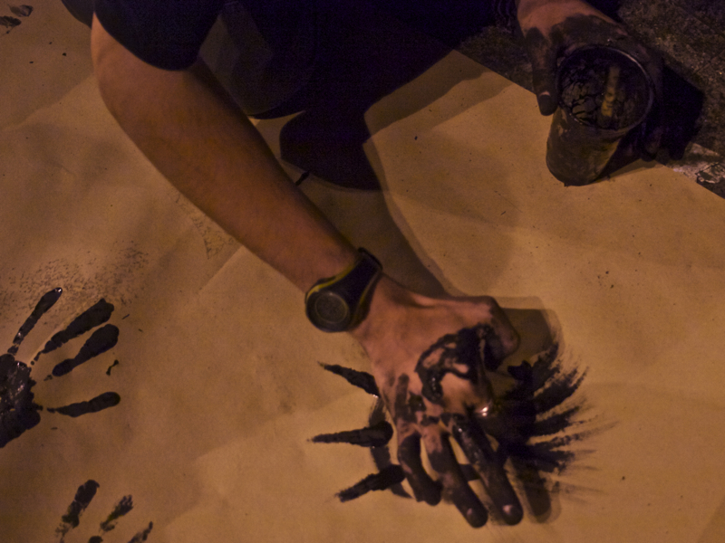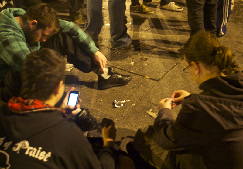 Sentados en el suelo y siguiendo la protesta con el smartphone. LD/Miquel Rosselló