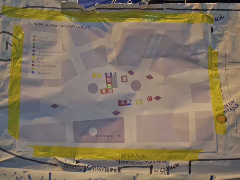 Localización de las comisiones creadas por los 'indignados' en el campamento de Sol.