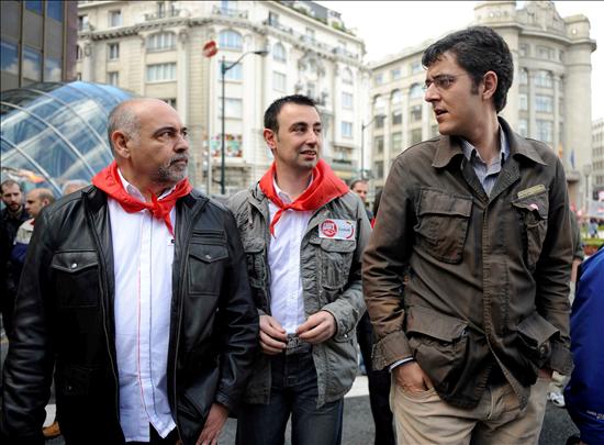 Los socialistas vascos Antonio Pastor, Mikel Torres y Eduardo Madina (i-d) han participado este viernes en la manifestación del Primero de Mayo convocada en Bilbao por los sindicatos UGT y CCOO. (EFE/Miguel Toña)