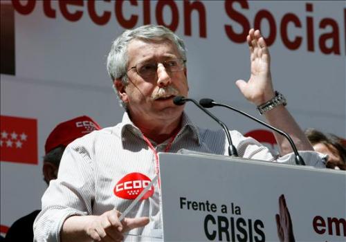 El secretario general de CCOO, Ignacio Fernández Toxo, durante su intervención en la manifestación convocada en Madrid conjuntamente con UGT con motivo del primero de mayo. (EFE/J.J. Guillén)
