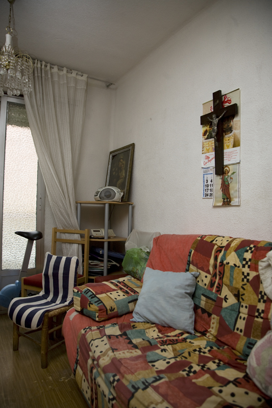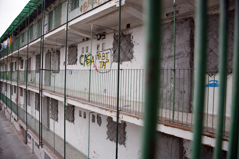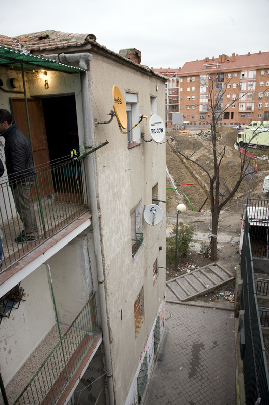 Puerta de la vivienda de una familia gitana que, a pesar de tener sólo de 35 metros cuadrados, dispone de dos antenas parabólicas. La televisión que no falte.