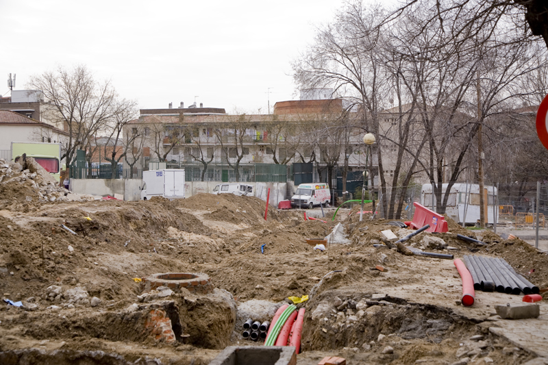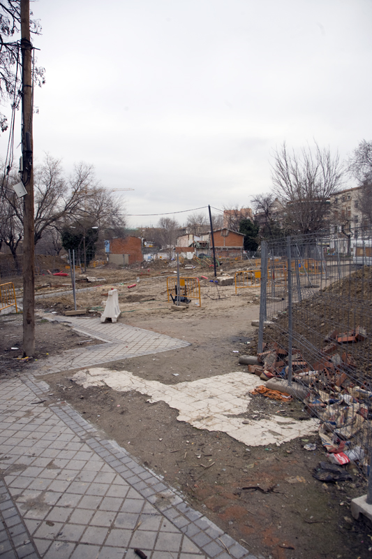 Las obras de anteriores demoliciones alfombran de barro y escombros el camino de la próxima víctima de la piqueta, al fondo.