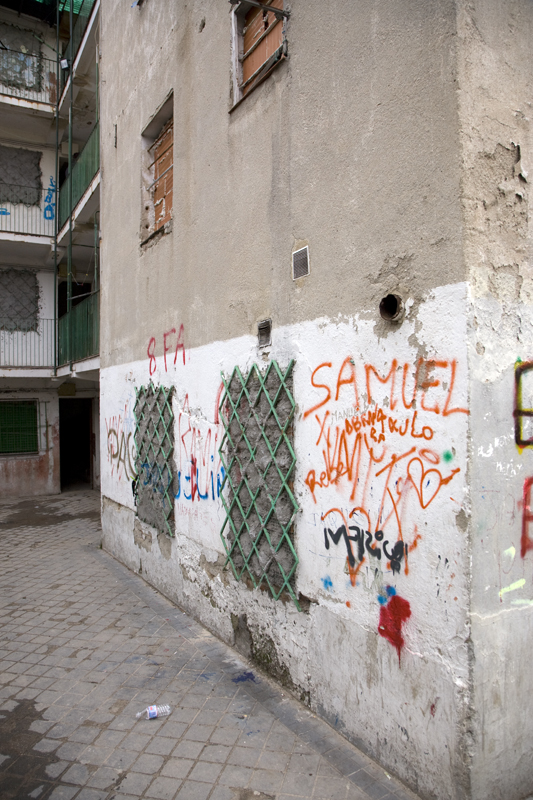 Las falta de atención y el descuido por parte del ayuntamiento ha provocado que la fachada luzca tan malamente, llena de desconchones y pintadas.