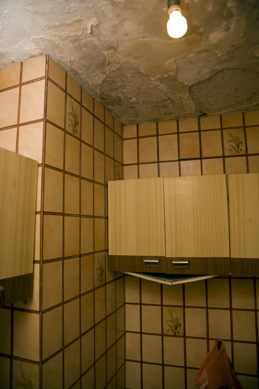En la cocina de una de las viviendas ocupadas del primer piso pueden verse las humedades. En el último piso es aún peor.