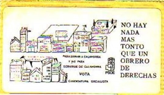 Hay cosas que no cambian... el PSOE llama aquí "tontos" a los obreros que osaran votar a Alianza Popular.