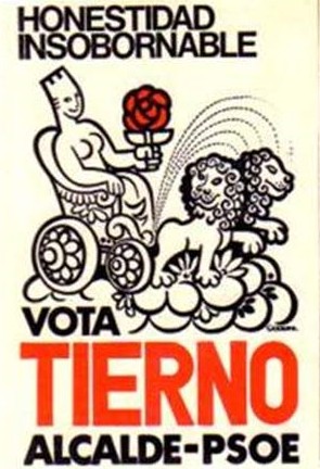 El PSOE le plantó la rosa de su logotipo a la Cibeles para pedir el voto para Enrique Tierno Galván, que terminaría convirtiéndose en el alcalde de Madrid. En aquellos tiempos presumían de "honestidad insobornable". Hoy no se atreverían a tanto.