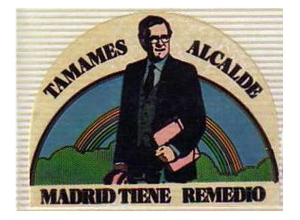 Un arcoiris para pedir el voto para Ramón Tamames, candidato del PCE. No lo consiguió.