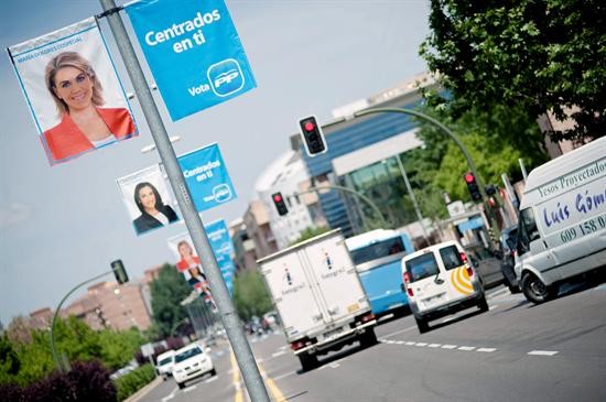 'Centrados en ti' es el lema de los populares y Cospedal se adelantó unas horillas en exhibirlo por las calles de Toledo. Hablaron de un error de la empresa encargada de colgarlos.