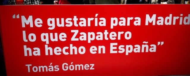 Este cartel irá colgado en el autobús de la campaña de Esperanza Aguirre y señala una muy desafortunada frase de Tomás Gómez.
