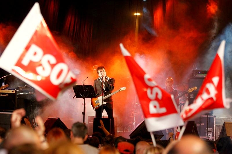 El PSOE de Madrid sí pudo contar con un grupo conocido que alegrara sus pobres expectativas electorales. Gabinete Caligari actuó para el PSOE en Callao.