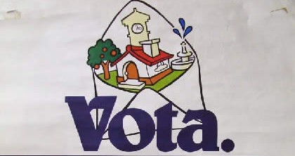 Con este dibujo de líneas infantiles se llamaba al voto en el ya lejano año 1979. Se celebraban las primeras elecciones municipales de la democracia y había que llamar a la participación.