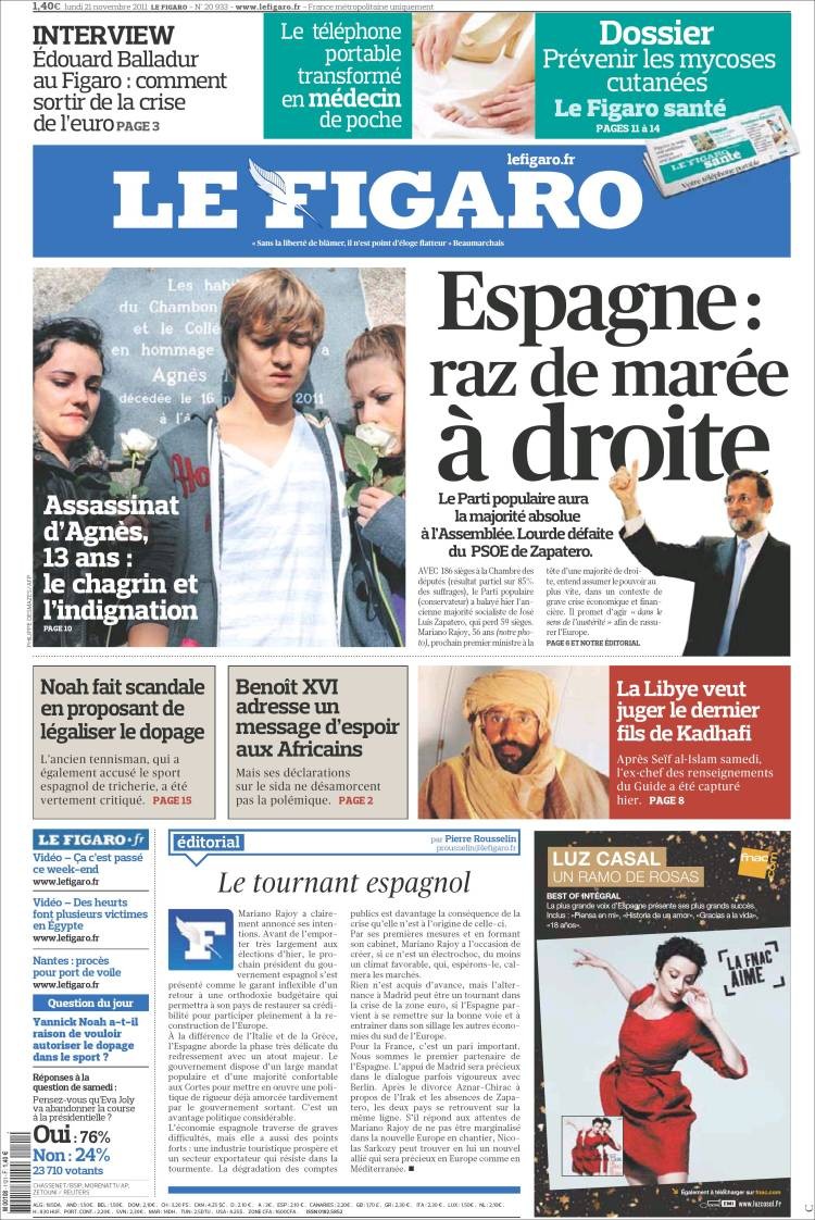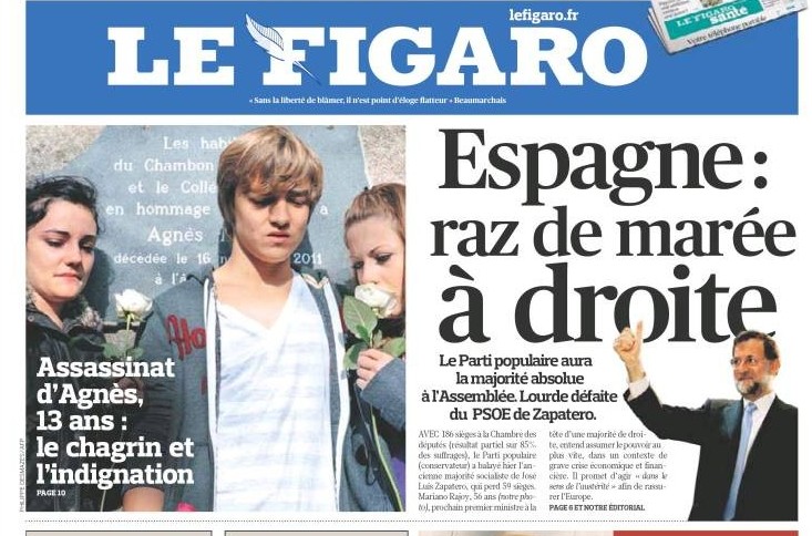 Peculiar titular de este diario francés sobre el resultado de las elecciones del 20-N: "Rajoy, nuevo rey de España".