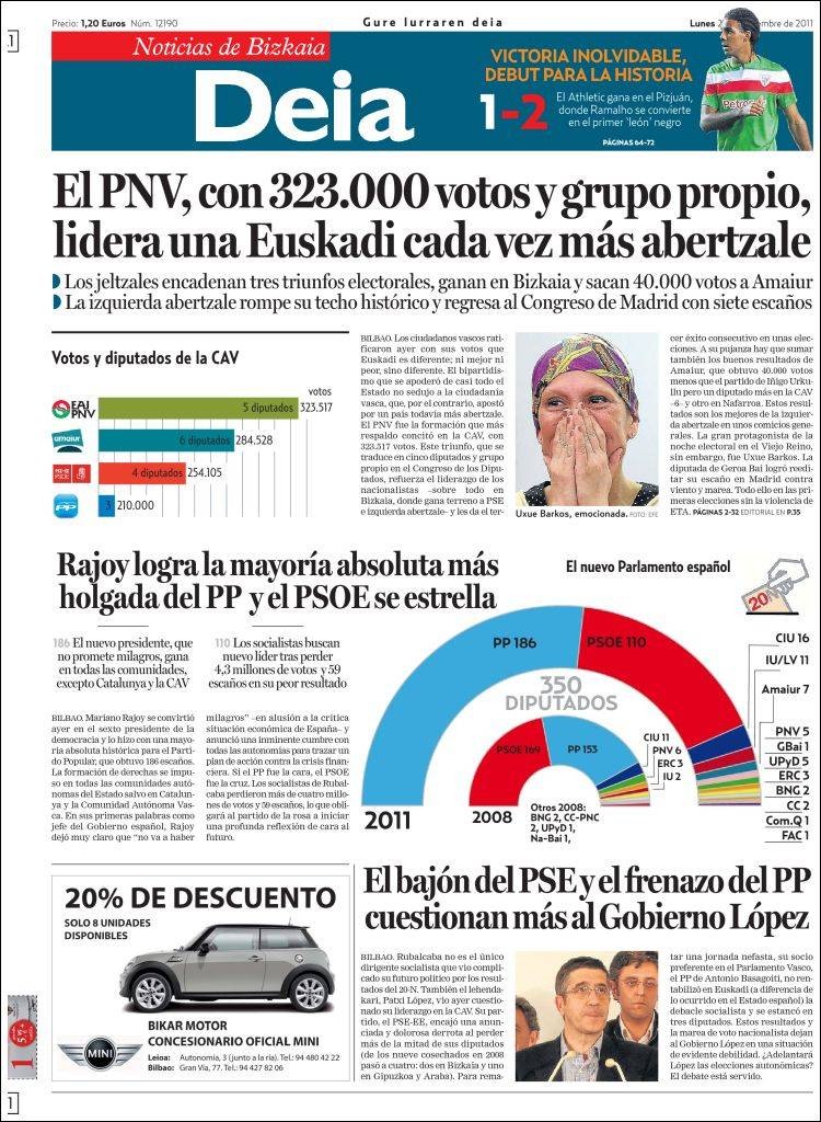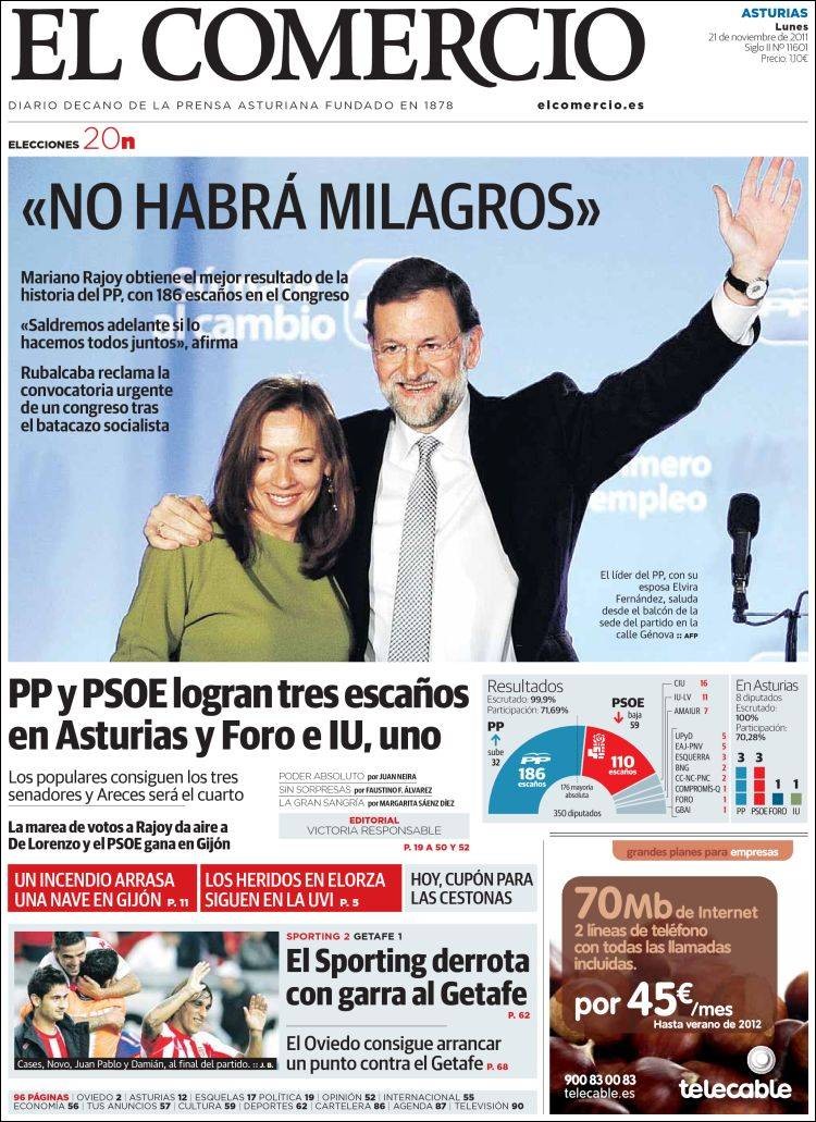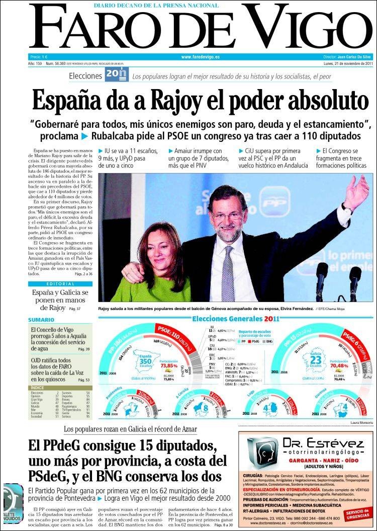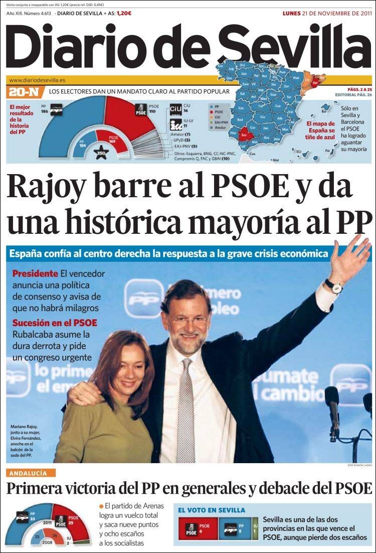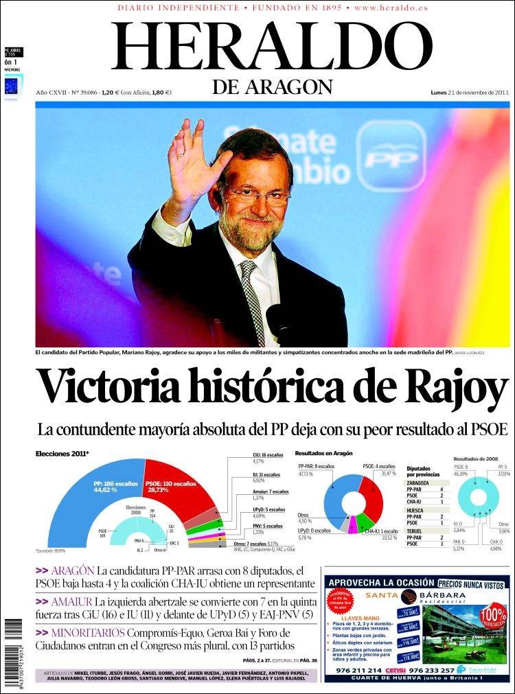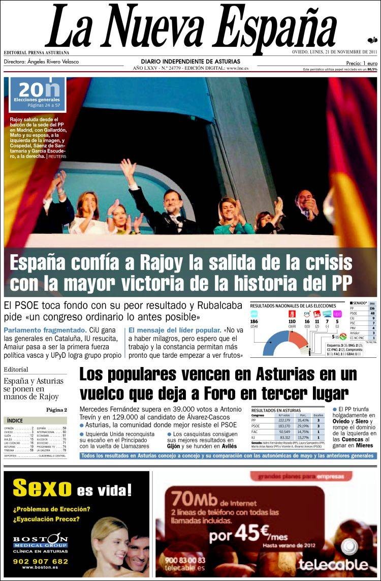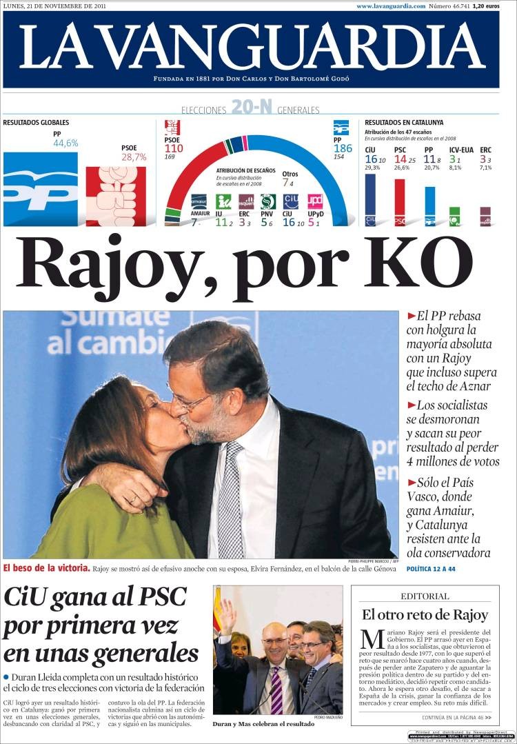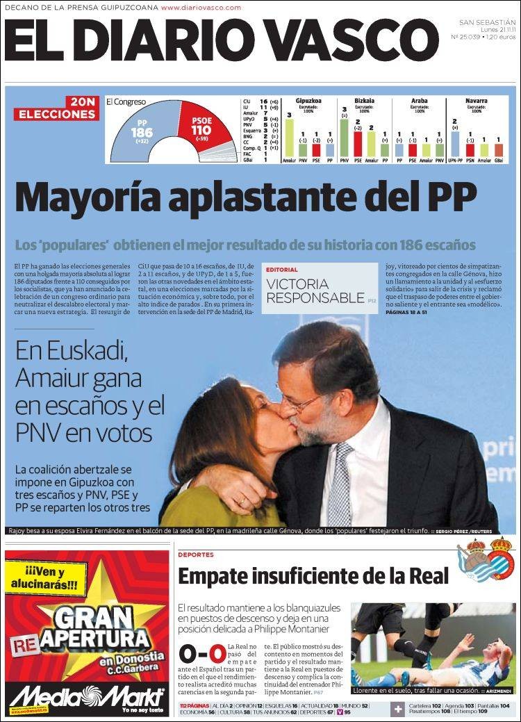 Los diarios españoles dedican su portada completa al histórico triunfo del Partido Popular en las elecciones.