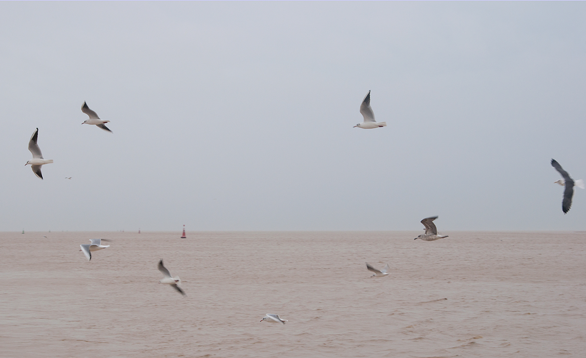 Muchas gaviotas escoltan al barco en los primeros momentos de la travesía