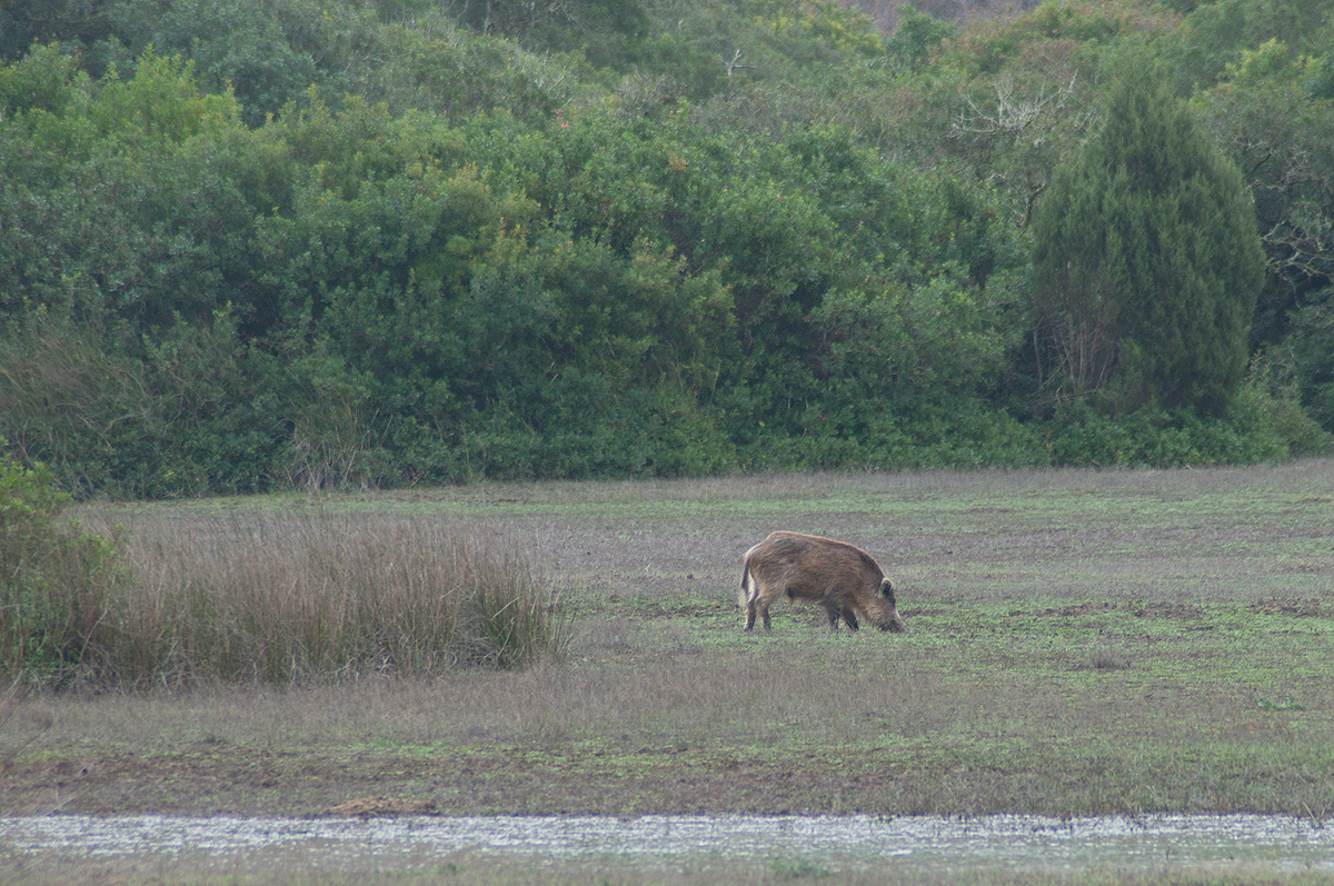 Un jabalí se pasea sin saberlo ante los excursionistas