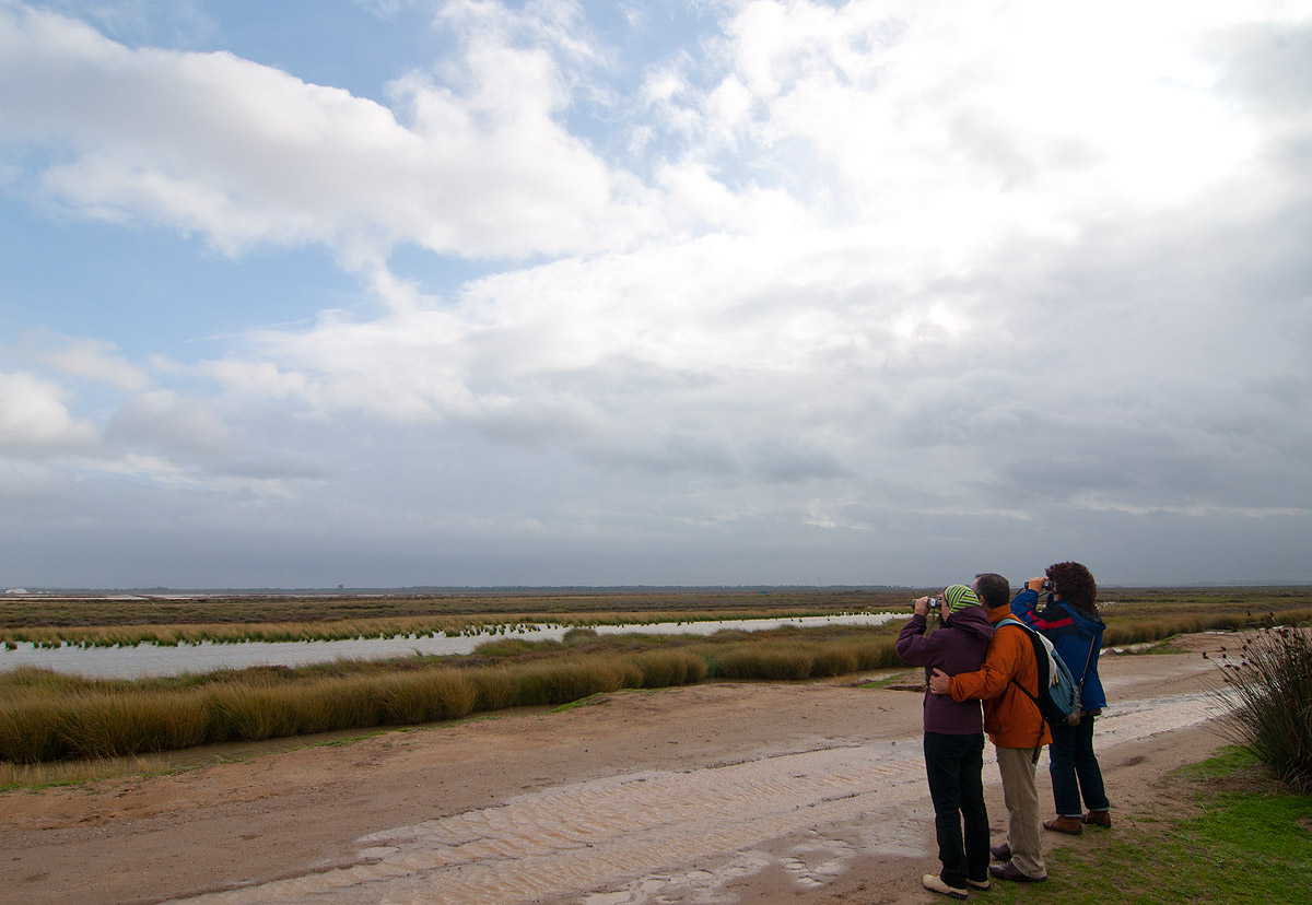 Excursionistas que trantan de avistar aves en el Parque Natural