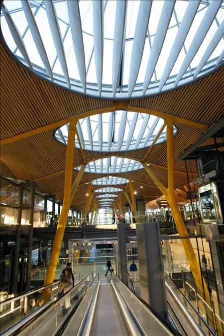Aspecto que presentaba esta tarde la terminal 4 del aeropuerto de Madrid-Barajas que se encuentra en situación "rate cero", lo que significa cerrado a las operaciones de aterrizaje y despegue, tras haber abandonado los controladores sus puestos de trabajo.