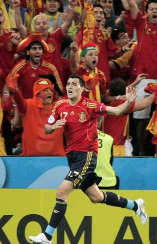 Dani Güiza celebra su gol, el de la victoria ante Grecia, en el estadio Wals-Siezenheim de Salzburgo, en partido de la última jornada del grupo D de la Eurocopa. (EFE)