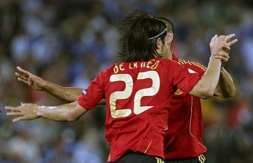 Curiosa celebración de Rubén de la Red, que había dado a España el empate. (EFE)