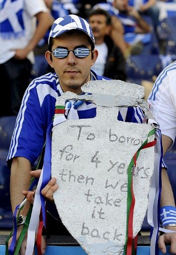 Un aficionado griego anima a su selección durante el partido contra España. (EFE)