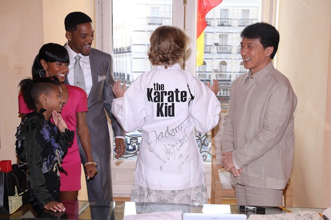 Esperanza Aguirre recibe a los actores Will Smith y Jackie Chan que se encuentran en España de gira promocional de la película "The Karate Kid".