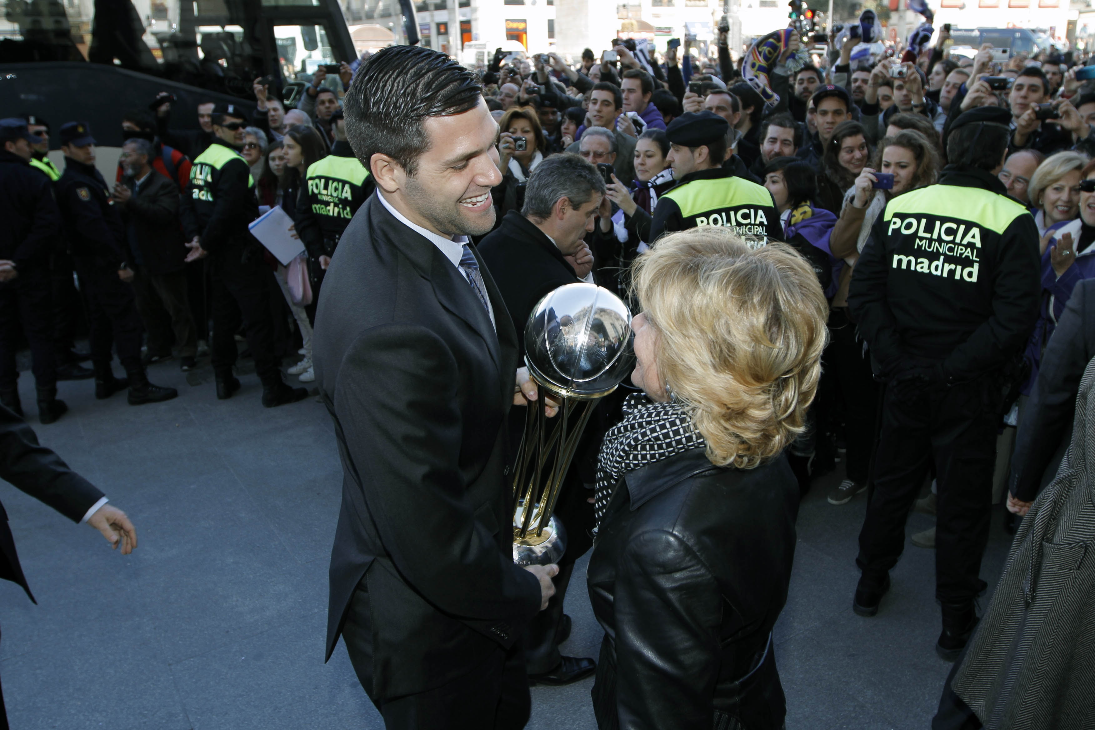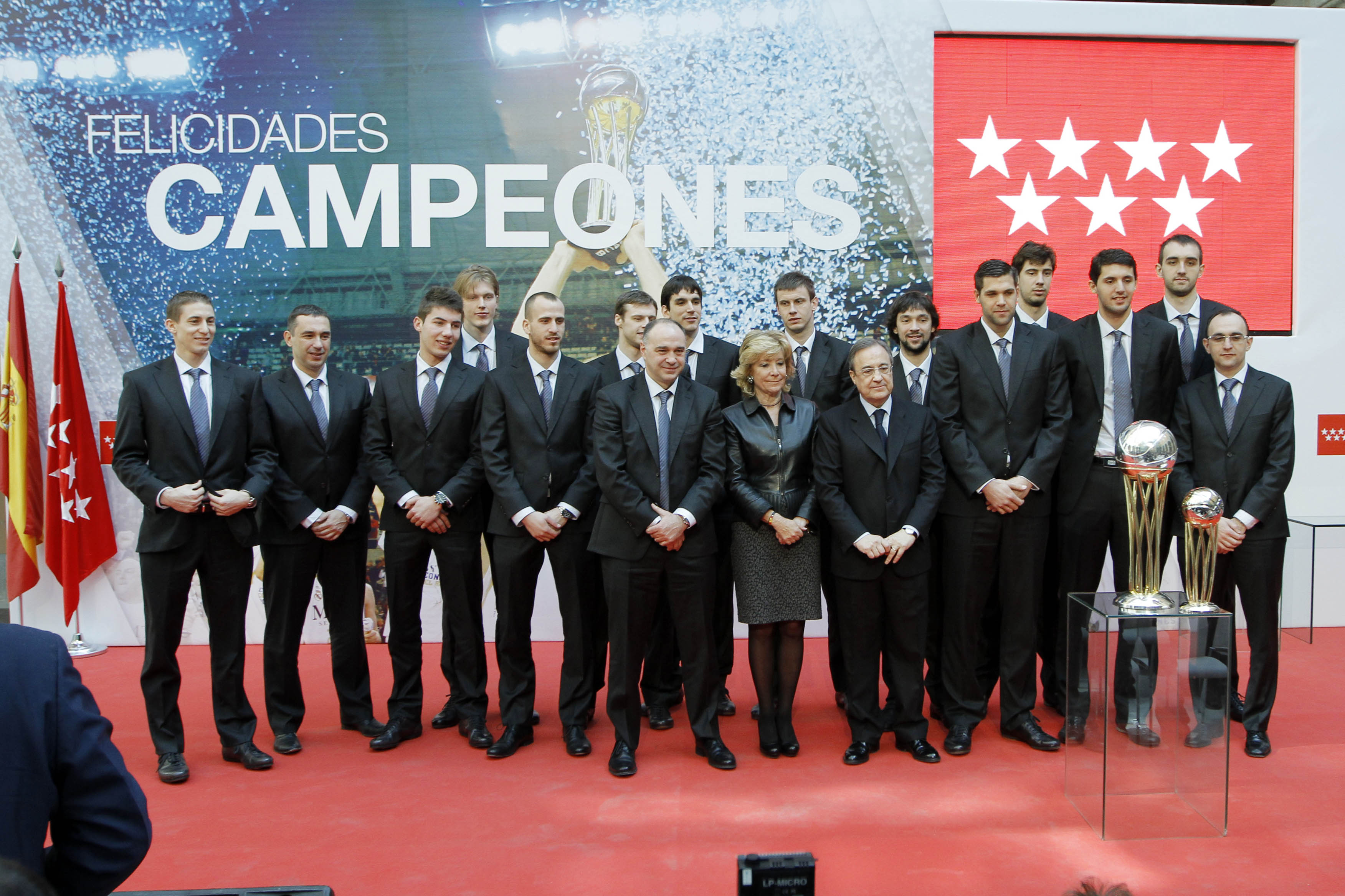 La presidenta de la Comunidad felicitó a todos los jugadores, en especial a Felipe Reyes, capitán del equipo.
