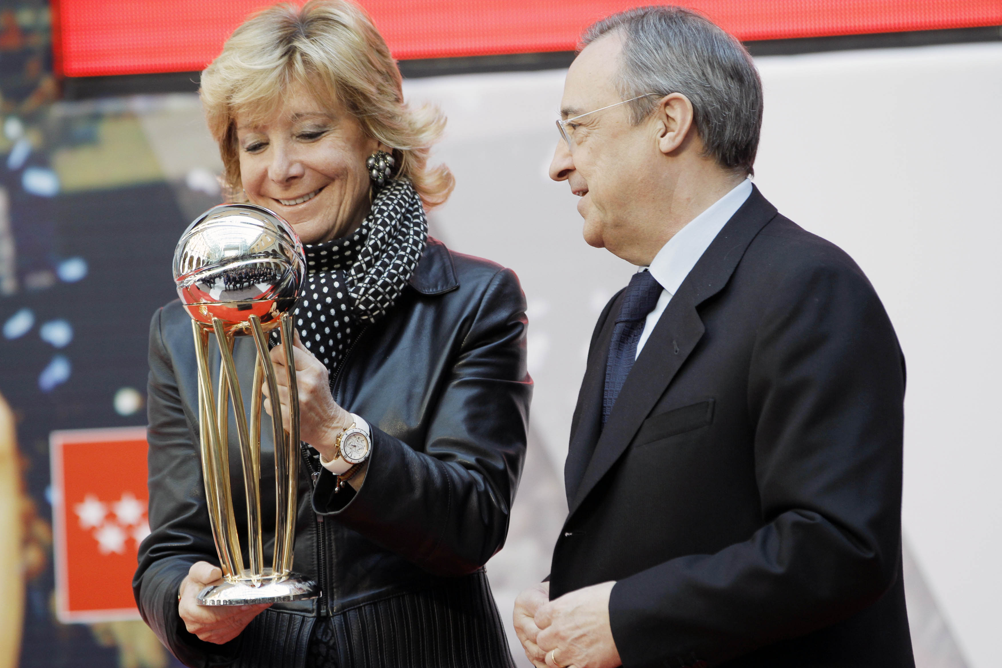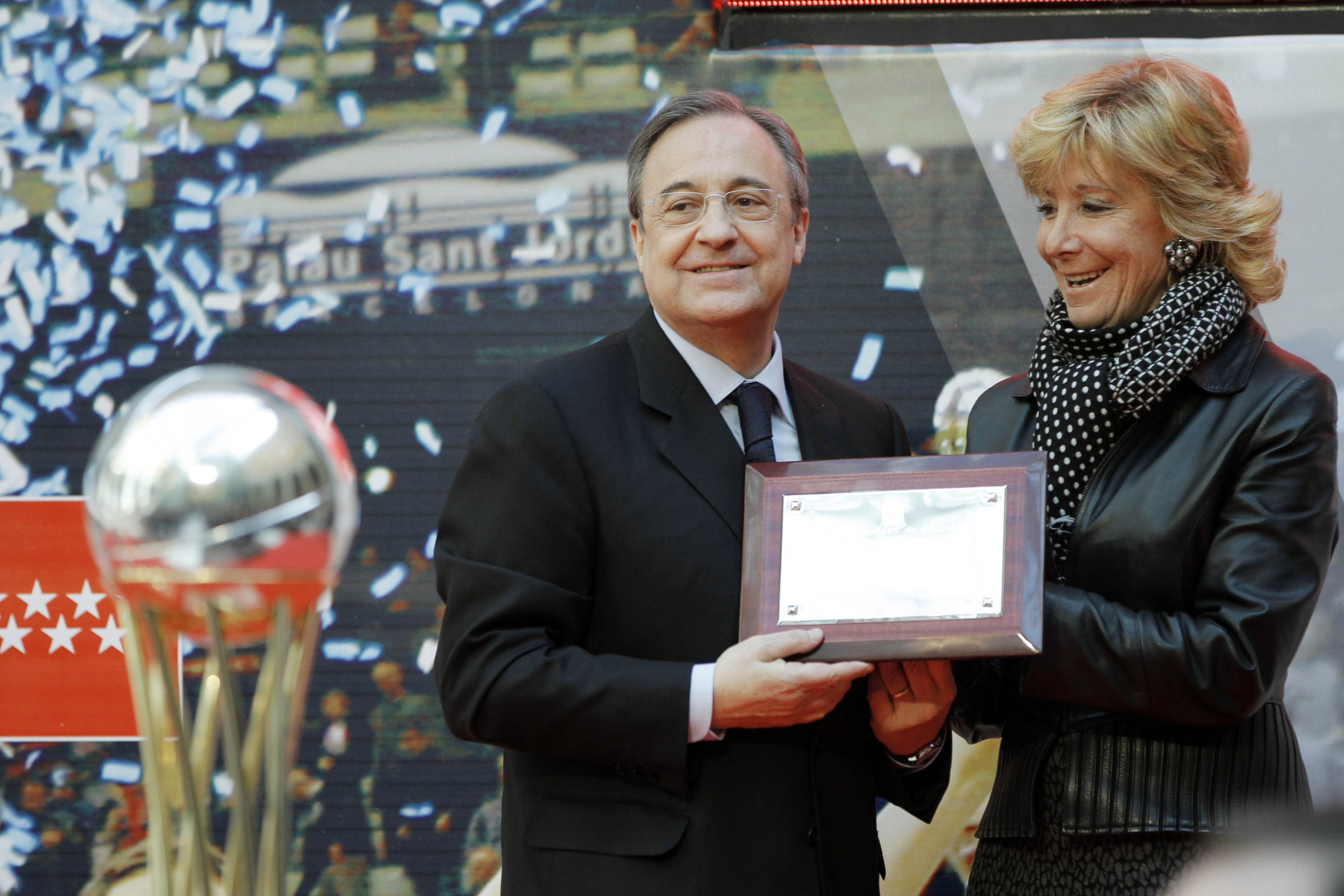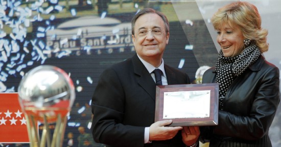 La Presidenta obsequió con una placa a Florentino, con la que felicitaba al equipo en nombre de todos los madrileños.