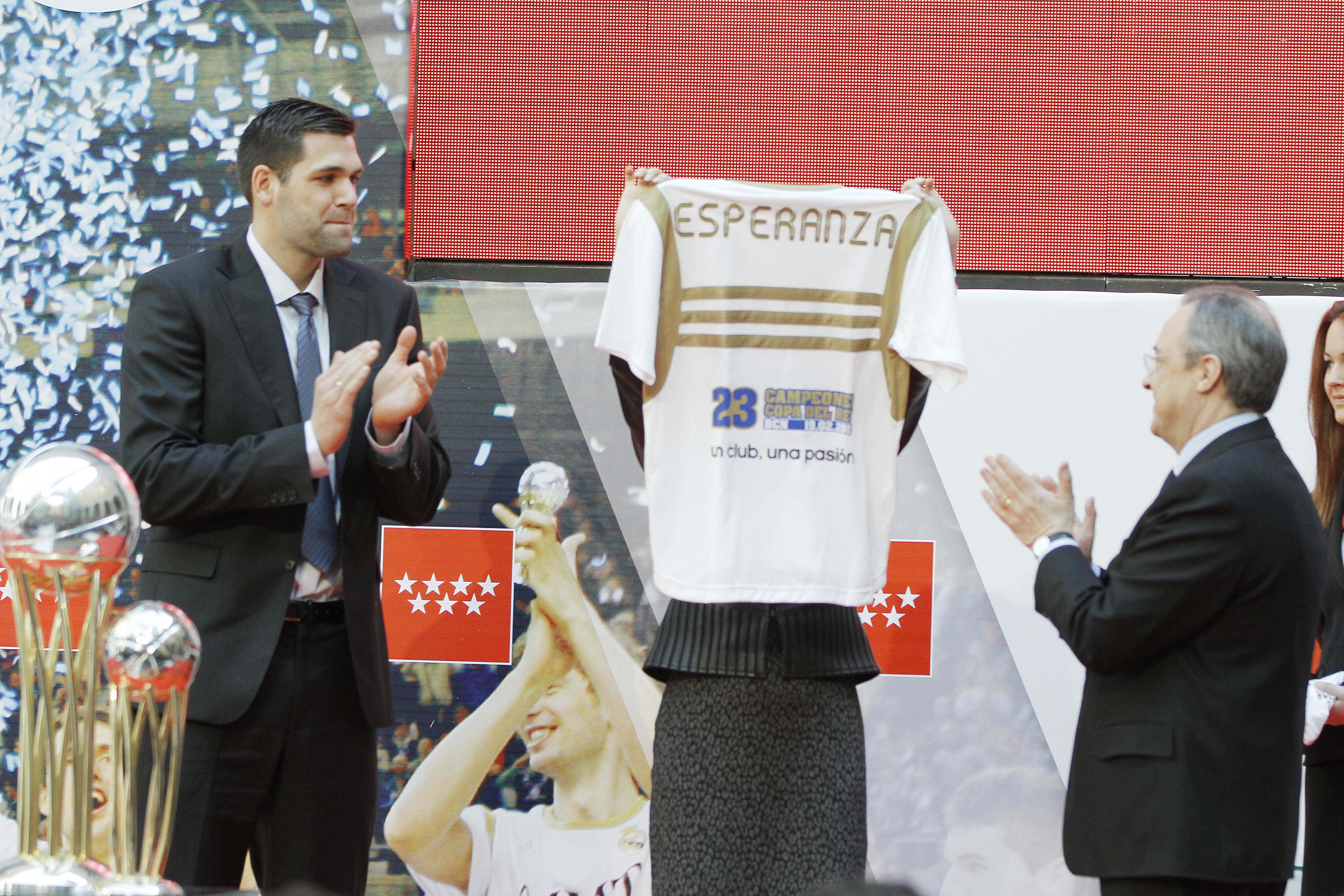 Esperanza, por su parte, recibió una camiseta del Real Madrid con su nombre y con el 23, el número de Copas del Rey que tiene en total el conjunto blanco. Curiosamente, el 23 es también el dorsal de Sergi Llull, el MVP del campeonato.
