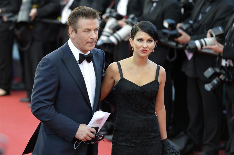 El actor estadounidense Alec Baldwin e Hilaria Thomas posan a su llegada a la proyección de la película Moonrise Kingdom, de Wes Anderson